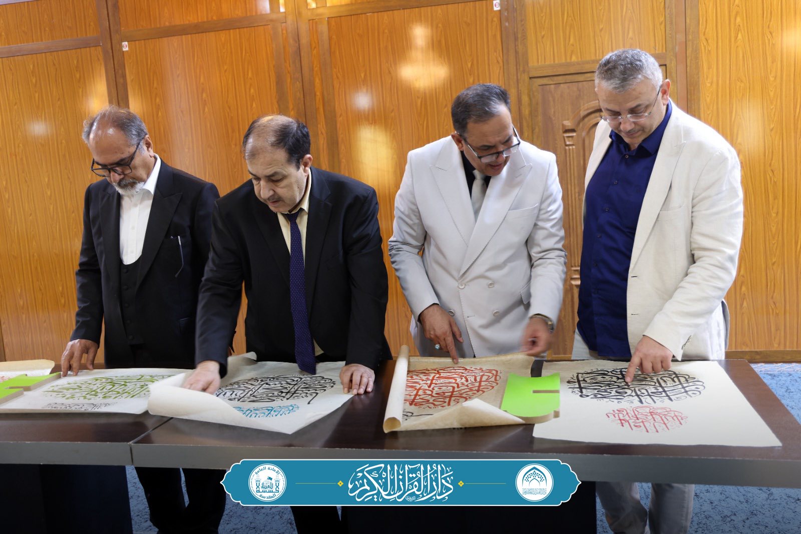 وبيّن:"باشرت لجان التحكيم التي تكوّنت من خمسة لجان متخصّصة بحسب نوع الخط أعمالها، بمشاركة نخبة من الأساتذة والخطاطين وكان من العراق الأستاذ الخطاط أكرم العبيدي ، والأستاذ الخطاط حبيب السعداوي ، والأستاذ الخطاط صادق الحسيني ومن تركيا الأستاذ الخطاط فرهاد قورلو ، ومن الجمهورية الإسلامية إيران الأستاذ الخطاط علي الشيرازي".