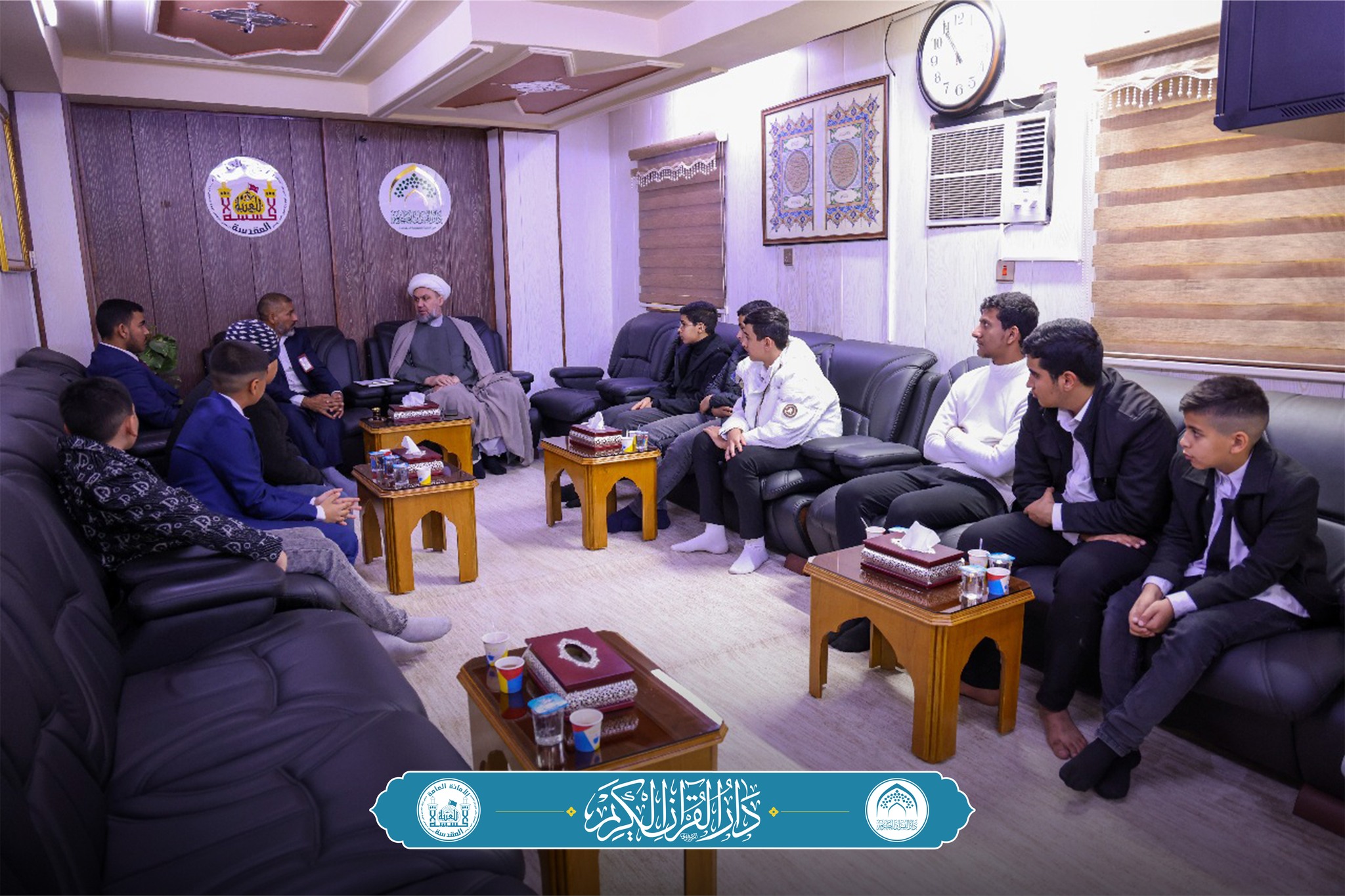 زار طلبة فرع دار القرآن الكريم في محافظة الديوانية بمعيّة مسؤول الفرع الأستاذ أحمد المرمضي، رئيس قسم دار القرآن الكريم سماحة الشيخ الدكتور خير الدين علي الهادي، في مكتبه اليوم السبت الموافق 6 كانون الأول.