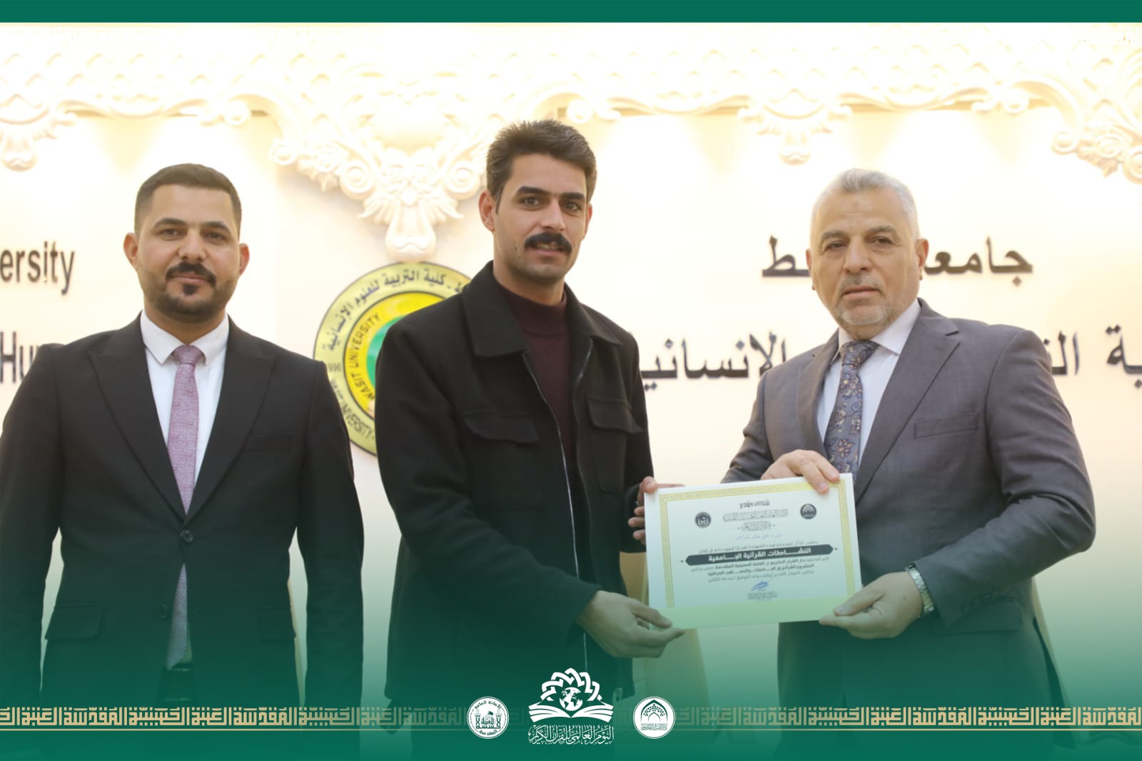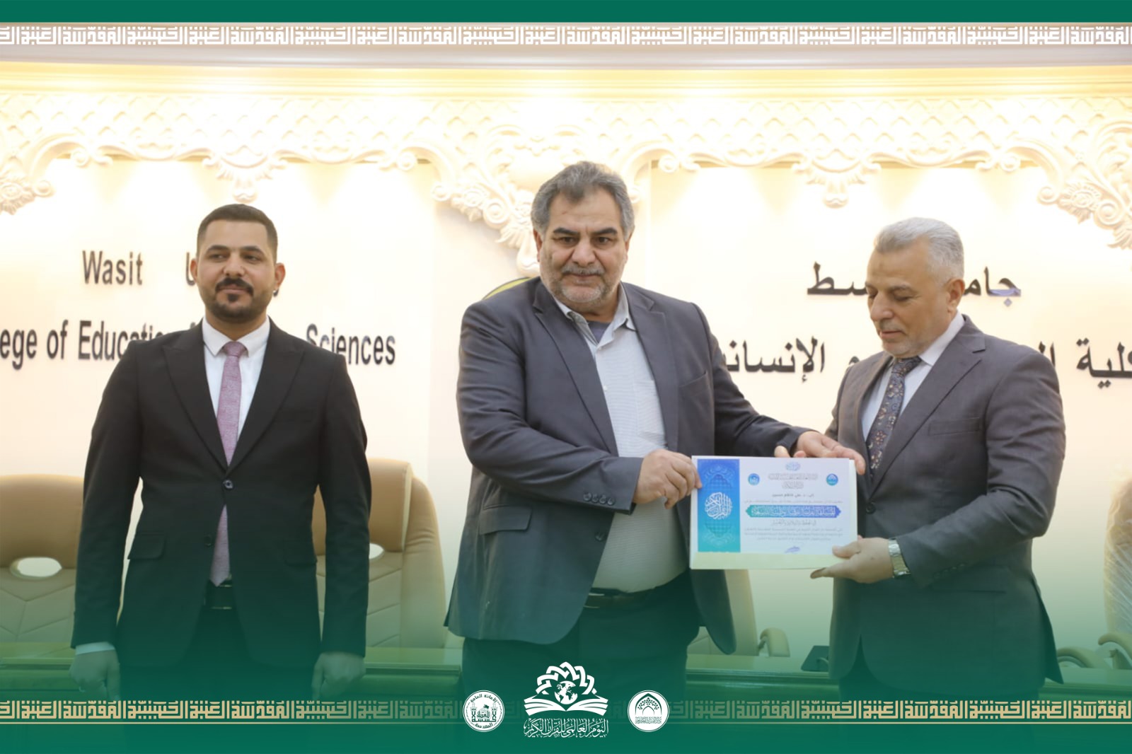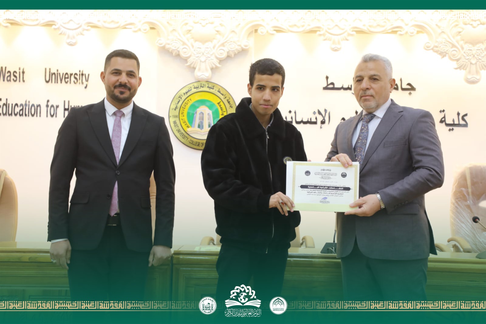 مبينًا:"اختُتم المحفل بتكريمٍ متبادل بين جامعة واسط والعتبة الحسينية المقدسة، حيث قدّم القائمون على الفعالية شكرهم وتقديرهم إلى قسم دار القرآن الكريم في العتبة الحسينية المقدسة، على جهوده المتواصلة في إقامة الأنشطة القرآنية الهادفة، التي تسهم في نشر الثقافة القرآنية ورفع صوت القرآن في أروقة الجامعات.