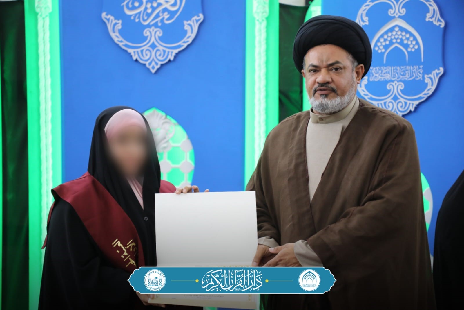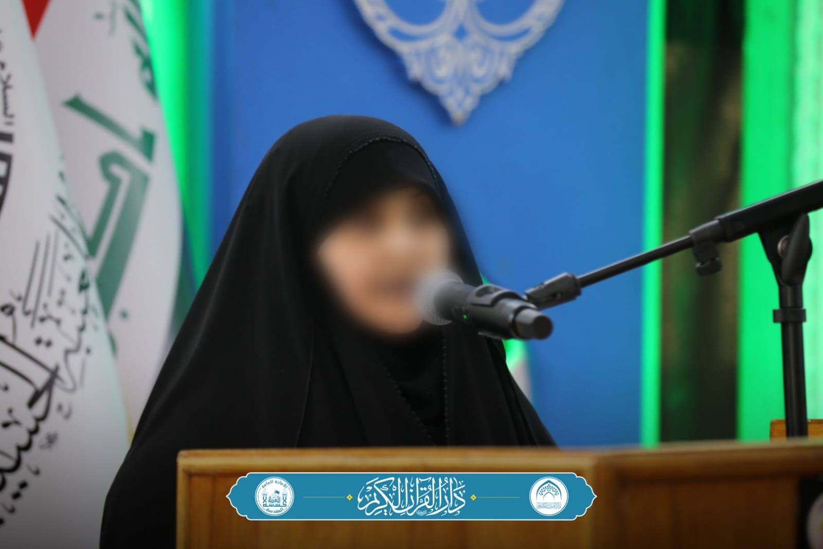 وقال مسؤول مركز الإعلام القرآني وسام نذير الدلفي:" استُهِلَّ المحفل بتلاوةٍ عطرةٍ من الذكر الحكيم، أعقبتها كلمةُ المعاون العلمي لرئيس قسم دار القرآن الكريم، السيد الدكتور مرتضى جمال الدين، أكّد فيها أنَّ الطالبات قد أتممن المرحلة الأولى من الإقراء والقراءة الصحيحة، مشيرًا إلى أهمية الانتقال إلى المرحلة الثانية التي تتضمن علوم القرآن الكريم والتعرّف على الآيات النازلة في حق الإمام الحسين والإمام المهدي والأئمة (عليهم السلام)".