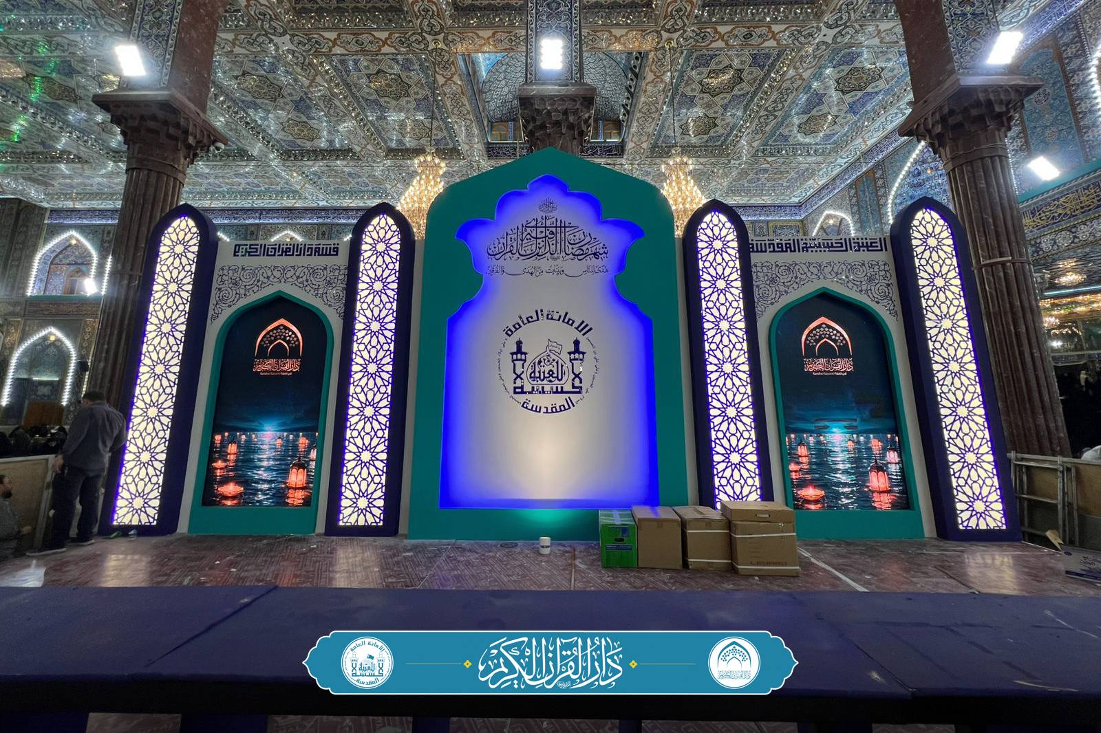 وبيّن" أنه تم استكمال الاستعدادات الفنية وجميع التجهيزات اللازمة وتنصيب الديكور الخاص بالختمة المركزية بالتعاون مع الكوادر الهندسية في قسم الصيانة وبالتنسيق مع قسم حفظ النظام وقسم الزينة والتشجير وقسم رعاية الحرم الداخلي والخارجي كما تمّ توفير (1400) مصحف جديد إضافة إلى (1400) مسند قرآني ينشر طيلة أيام الشهر الفضيل مع مشاركة (60) متطوعًا في تنظيم الحضور وخدمة الزائرين".