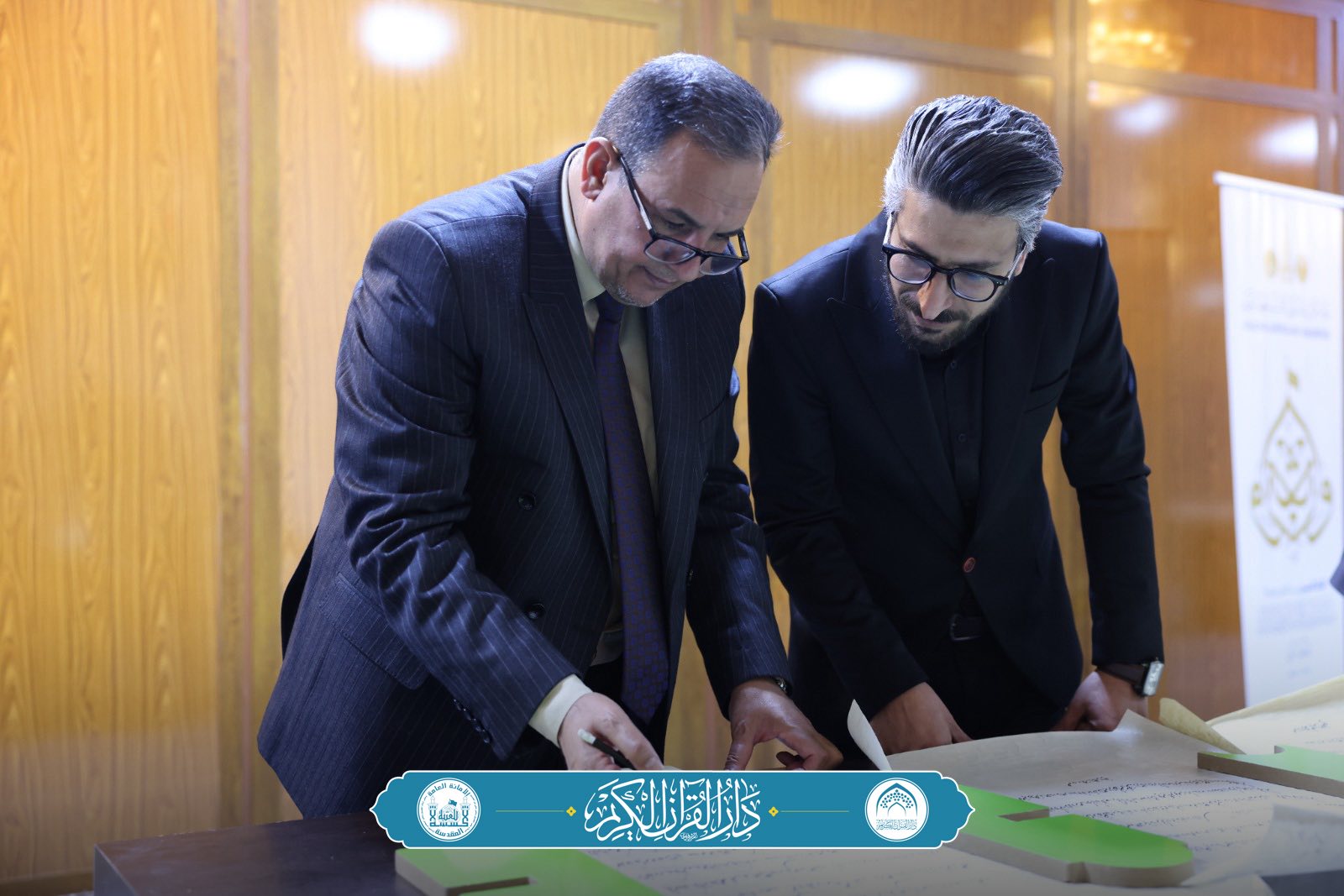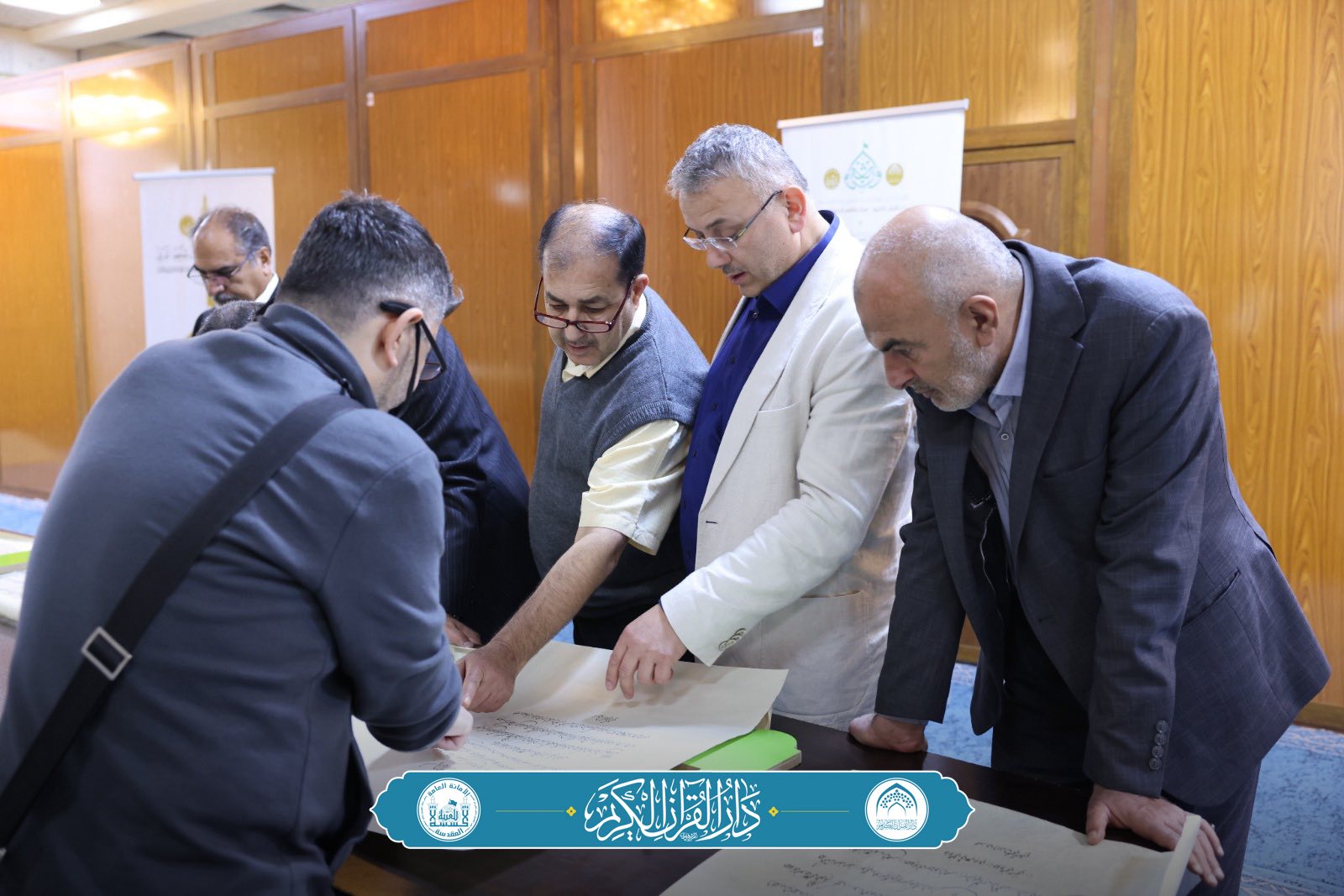 تُتابع لجان الخطاطين أعمالَ التحكيم في فترتها المسائية ضمن المرحلة الثانية من مسابقة وارث الأنبياء الدولية الثالثة للخط العربي، وشرُفت الأعمال بحضور رئيس قسم دار القرآن الكريم، الشيخ الدكتور خير الدين علي الهادي، الذي تفقّد مجريات التحكيم واطّلع على آليات تقييم الأعمال التي يقيمها مركز والقلم للخط العربي التابع لقسم دار القرآن الكريم في العتبة الحسينية المقدسة.