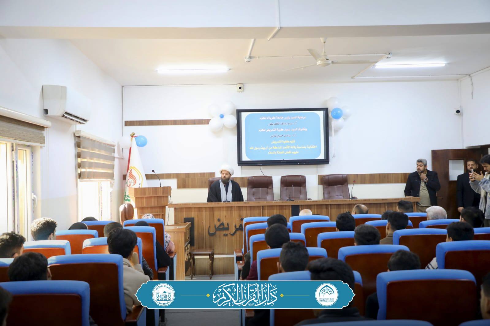 بالتزامن مع الولادات الشعبانية المباركة، أقامت دار القرآن الكريم في العتبة الحسينية المقدسة وبالتعاون مع جامعة كربلاء – كلية التمريض حفلًا قرآنيًا و ندوة علمية، وذلك بدعوةٍ كريمة من عميد الكلية الدكتور سلمان حسين الگريطي.