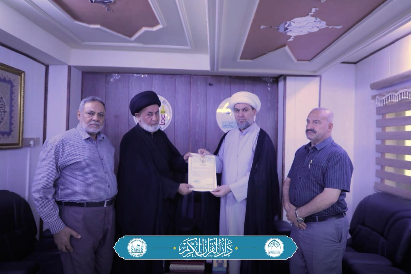 وفي ختام اللقاء قدّم وفد مركز كربلاء للدراسات والبحوث إلى إدارة دار القرآن الكريم كتاب شكر وتقدير مؤكدًا تقديره للجهود المبذولة من قبل الدار في تعزيز التعاون العلمي والمعرفي. كما وجّه الوفد دعوة رسمية إلى إدارة الدار لزيارة مقر المركز من أجل توسيع دائرة الشراكات العلمية والمعرفية وتعزيز أطر التعاون المشترك.