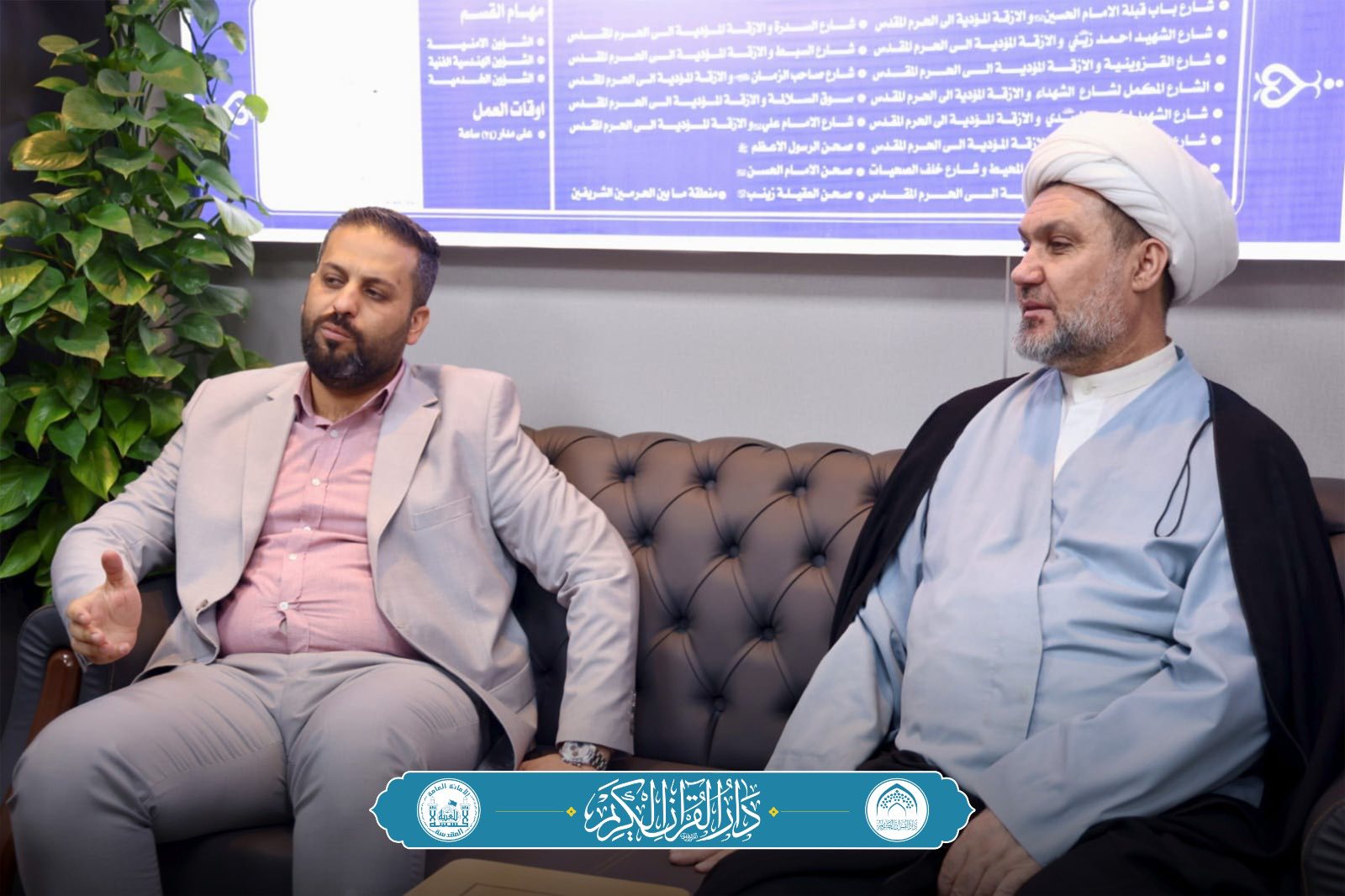 وأوضح :" أبدى السيد الفتلاوي إعجابه الكبير بما يقدّمه قسم دار القرآن الكريم من نشاطات وفعاليات نوعية، مؤكّدًا حرصه على دعم هذه الجهود وتذليل العقبات أمام المشاريع المشتركة خدمةً للقرآن الكريم ومنهجه القويم".
