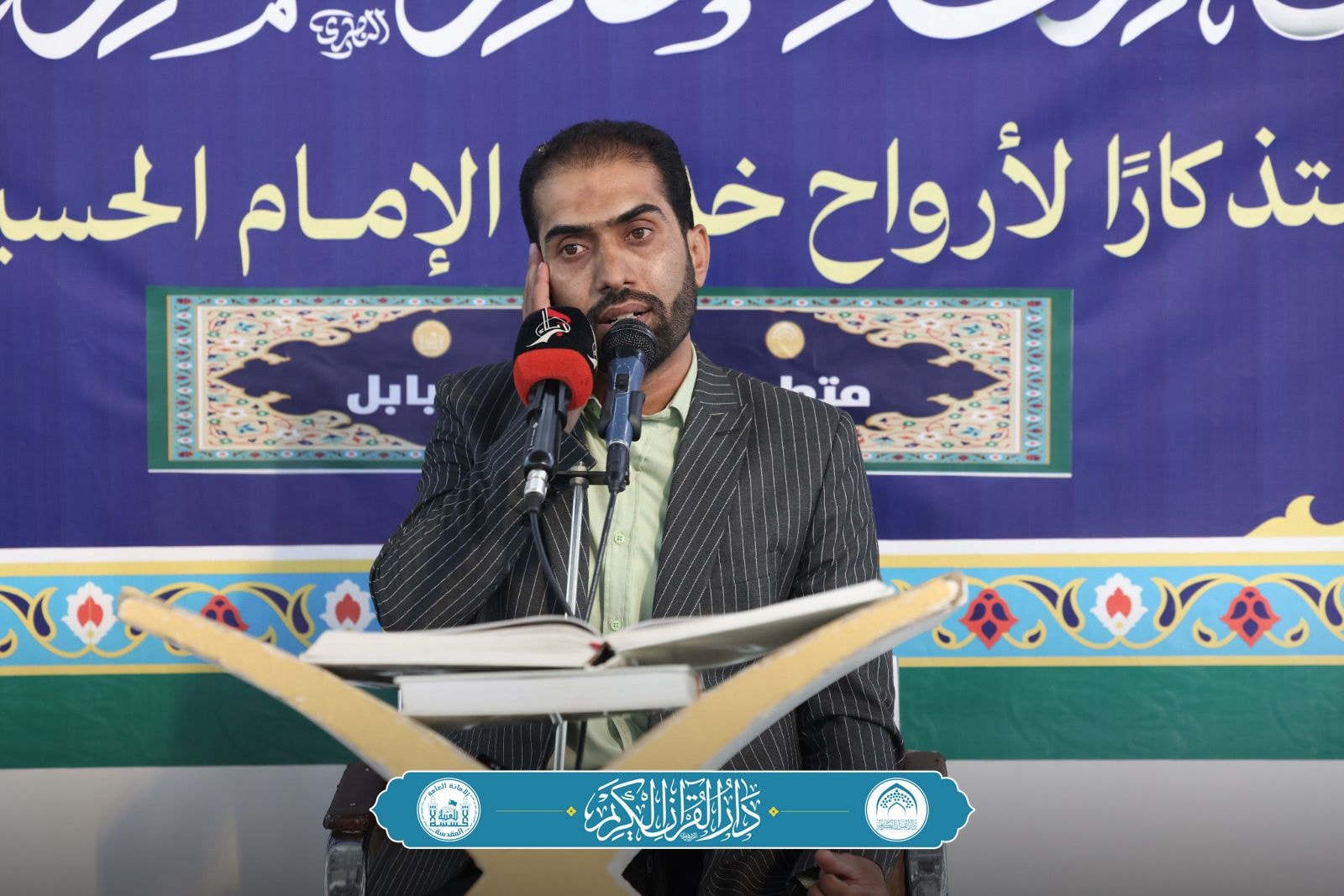 استأنفت دار القرآن الكريم في العتبة الحسينية المقدسة سلسلة محافل "خدّام الإمام الحسين (عليه السلام) " يوم الأربعاء الموافق ٣ / ٩ / ٢٠٢٥ م بالتعاون مع قسم حفظ النظام - شعبة المتطوعين بمشاركة كل من القارئ الدكتور محمد الطيار والقارئ البرعم علي رضا حسين والقارئ مرتضى ريسان وبمشاركة فرقة تواشيح تابعة لمدرسة زهير بن القين (رض) القرآنية وعرافة الحفل عباس الشيباوي ، في الصحن الحسيني الشريف .