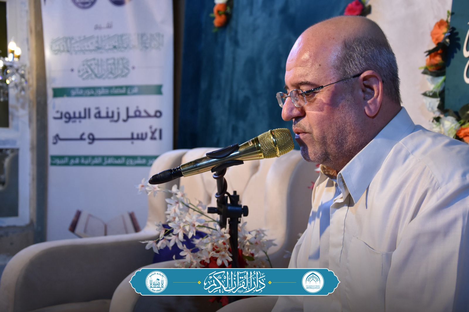 أقام فرع دار القرآن الكريم في العتبة الحسينية المقدسة ـ طوزخورماتو، محفل "زينة البيوت" الأسبوعي في منزل الأستاذ علي إسماعيل (أبو حسين)، استُهل المحفل بكلمة ترحيبية للأستاذ علي العسافي، أعقبها تلاوات قرآنية عطرة قدّمها القارئ حسن وصفي والقارئ الأستاذ محمود إبراهيم، كما شاركت فرقة الولاية بفقرة مميّزة تناولت الآيات والروايات والأبيات في فضائل السيدة زينب (عليها السلام)، وسط حضور جمع من أهالي المدينة الذين تفاعلوا بأجواء من الفرح والروحانية، وذلك يوم الاثنين الموافق 29 أيلول 2025.