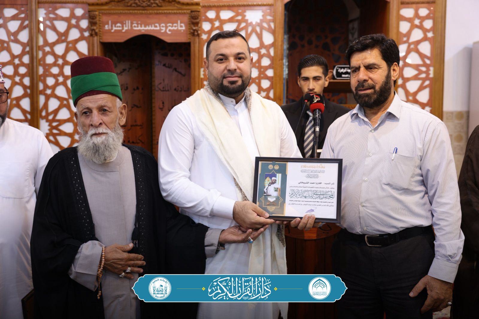 بحضور قراء العتبتين المقدستين القارئ عادل الكربلائي والقارئ أحمد الشريخاني ومشاركة القارئ أسامة السلطاني فيما تولّى عرافة الحفل السيد حسين الكعبي.