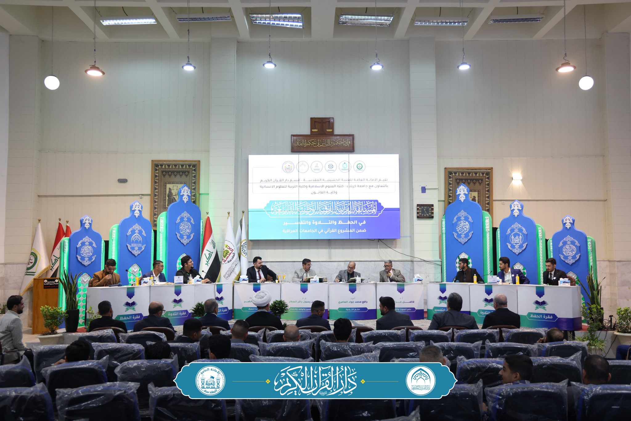 استمرار المسابقة القرآنية الفرقية الوطنية التاسعة في جامعة كربلاء التي تنظّمها دار القرآن الكريم في العتبة الحسينية المقدسة ، بالتعاون مع جامعة كربلاء كلية القانون و كلية العلوم الإسلامية و كلية التربية للعلوم الإنسانية، لليوم الثاني على التوالي، الجولة الأولى من الفترة الصباحية، بمشاركة سبع فرق من مختلف الجامعات العراقية من محافظة كربلاء المقدسة و البصرة و ديالى و بابل و واسط و صلاح الدين و ذي قار.