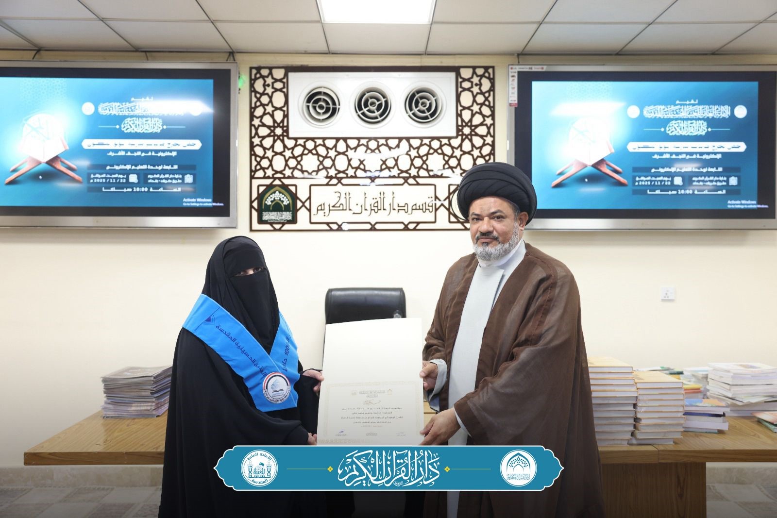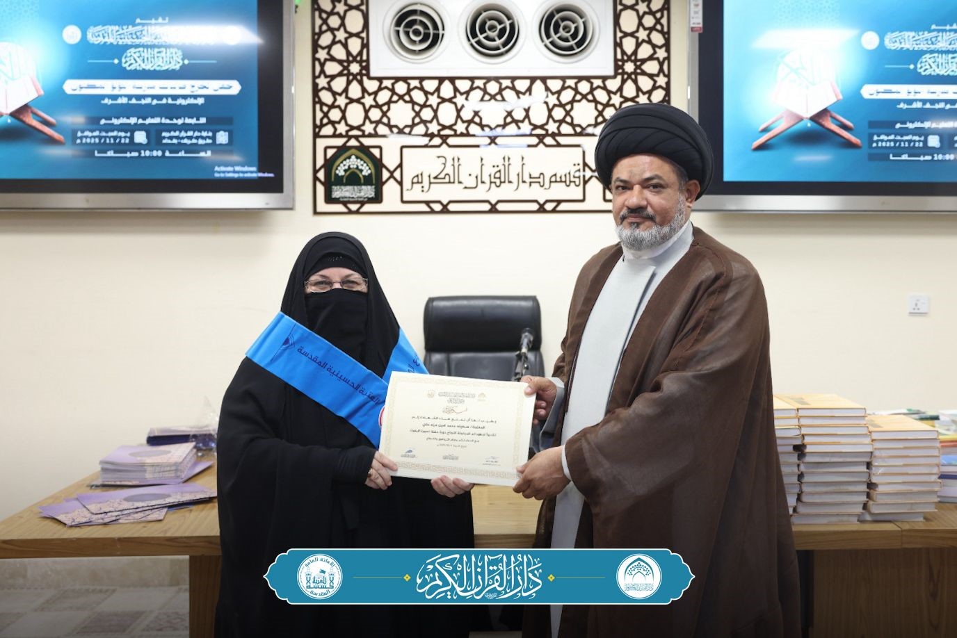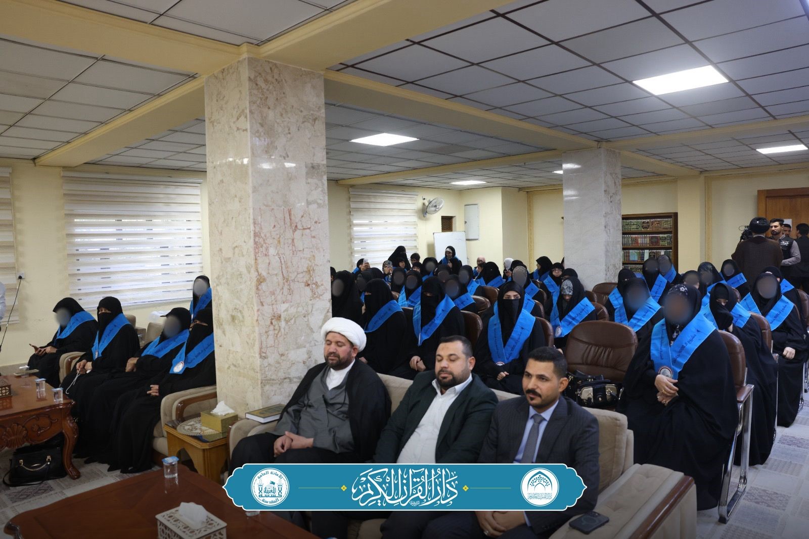 احتفت دارُ القرآن الكريم في العتبة الحسينية المقدّسة بتخرّج دفعةٍ جديدة من طالبات “دورة اللؤلؤ المكنون”، والتي ضمّت (160) طالبة قدِمْن من محافظات العراق كافة، في بناية دار القرآن الكريم طريق بغداد، يوم السبت 22 تشرين الثاني 2025.