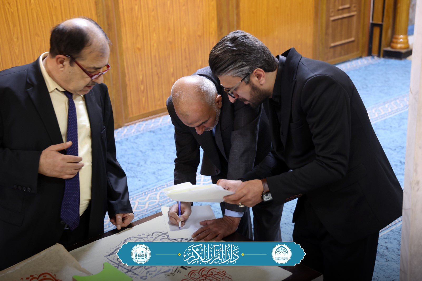 وبيّن:"باشرت لجان التحكيم التي تكوّنت من خمسة لجان متخصّصة بحسب نوع الخط أعمالها، بمشاركة نخبة من الأساتذة والخطاطين وكان من العراق الأستاذ الخطاط أكرم العبيدي ، والأستاذ الخطاط حبيب السعداوي ، والأستاذ الخطاط صادق الحسيني ومن تركيا الأستاذ الخطاط فرهاد قورلو ، ومن الجمهورية الإسلامية إيران الأستاذ الخطاط علي الشيرازي".