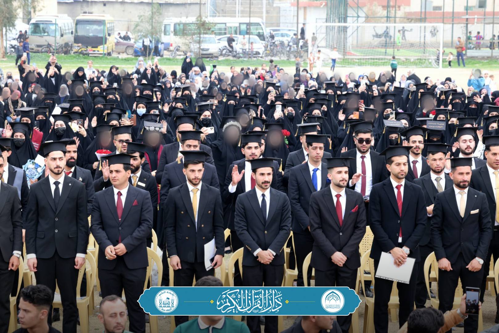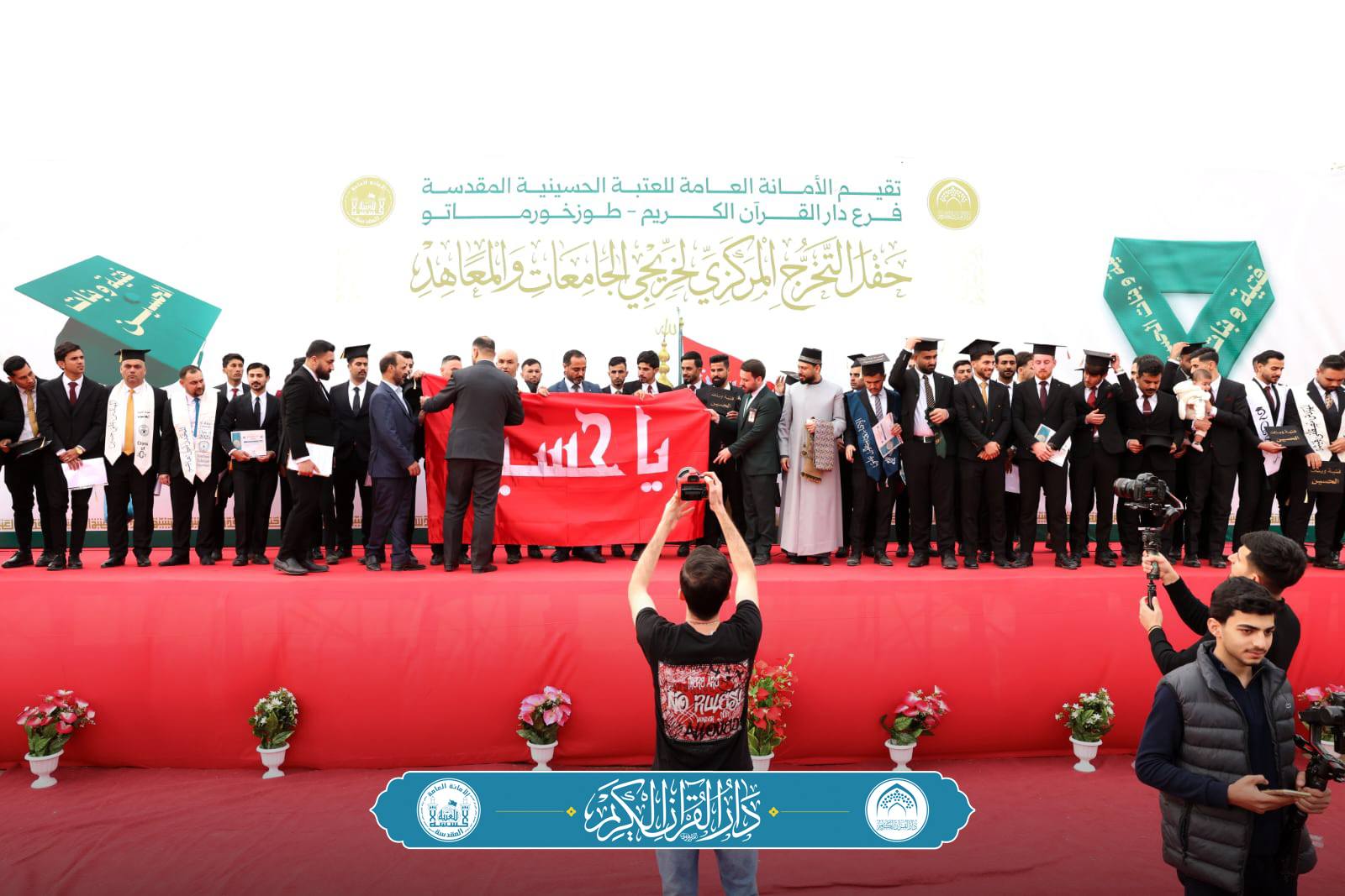 وأضاف الدلفي:"شهد الحفل تقديم راية الإمام الحسين (عليه السلام) إلى الدفعة المباركة الموسومة بـ(دفعة فتيان وبنات الحسين (عليه السلام)، وسط تهاني وتبريكات مقدّمة من قبل وفد قسم دار القران الكريم في مشهدٍ عبّر عن عمق الارتباط بالنهج الحسيني وترسيخ القيم القرآنية في الوسط الجامعي".