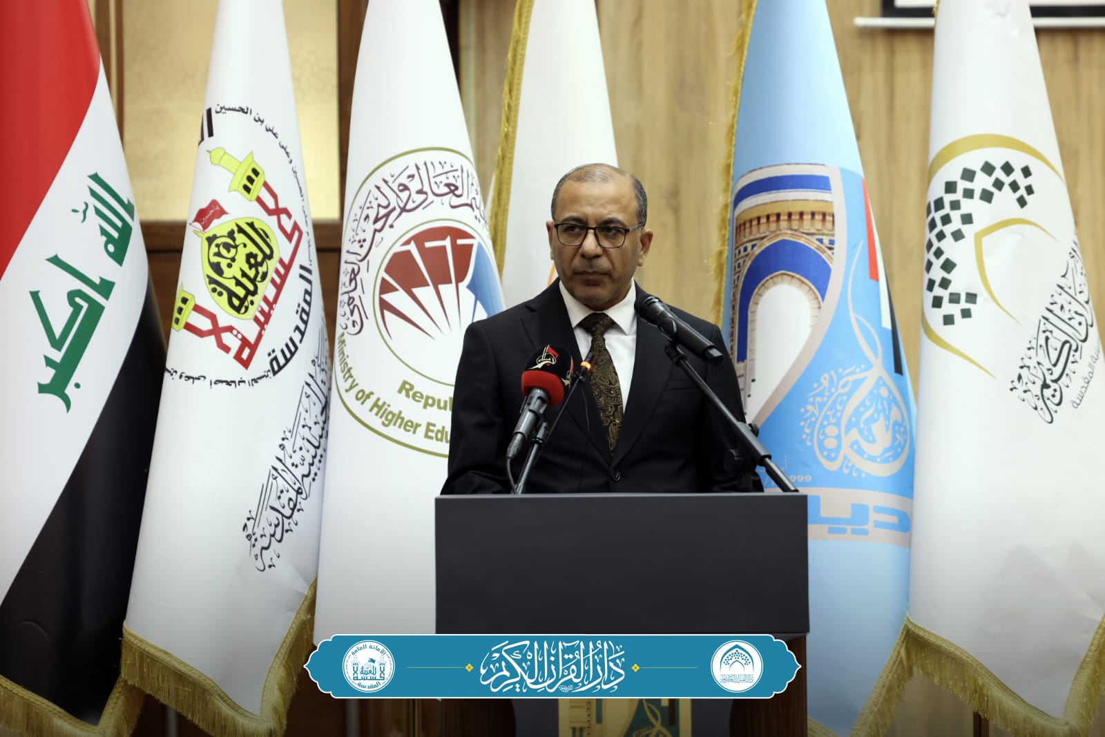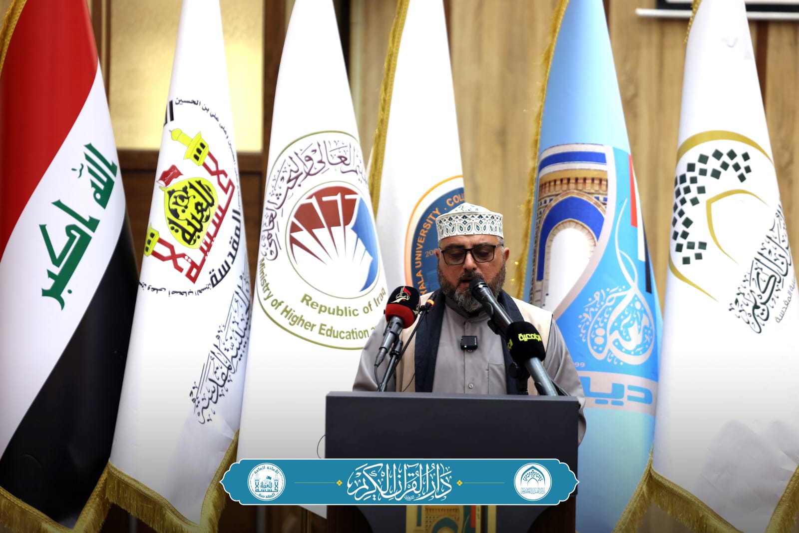 وأضاف الدلفي: "وافتتح الحفل بتلاوة لقارئ العتبتين المقدستين عادل الكربلائي، وكلمة النائب الأول لمحافظ ديالى الدكتور مصطفى طالب اللهيبي، تلتها كلمة رئيس الجامعة الأستاذ الدكتور تحسين حسين مبارك، كما تضمّن الحفل كلمة لرئيس قسم دار القرآن الكريم الشيخ الدكتور خير الدين الهادي، وكلمة لمعاون مدير صحة ديالى الدكتور أحمد حسن علوان".