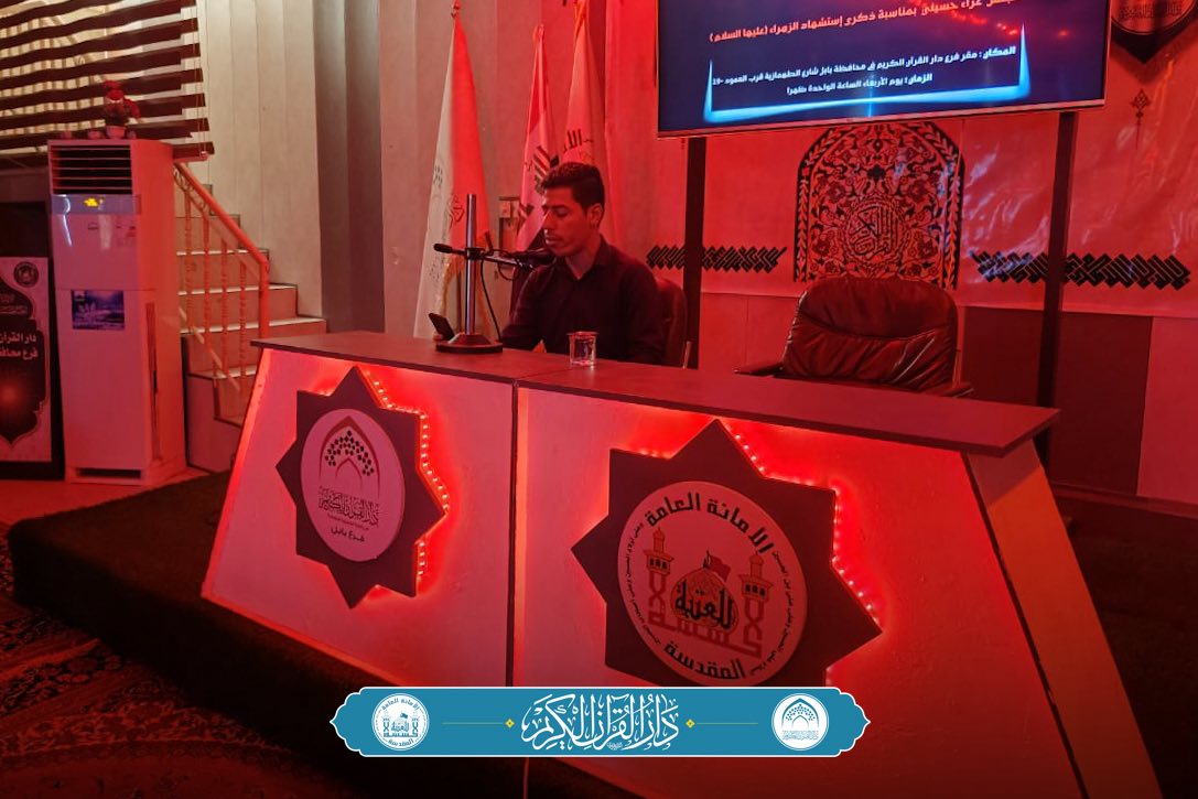 أقام فرع دار القرآن الكريم في العتبة الحسينية المقدسة في محافظة بابل، مجلس عزاء إحياءً لذكرى استشهاد البضعة الطاهرة فاطمة الزهراء (عليها السلام)، يوم الأربعاء الموافق 1 تشرين الأول 2025،