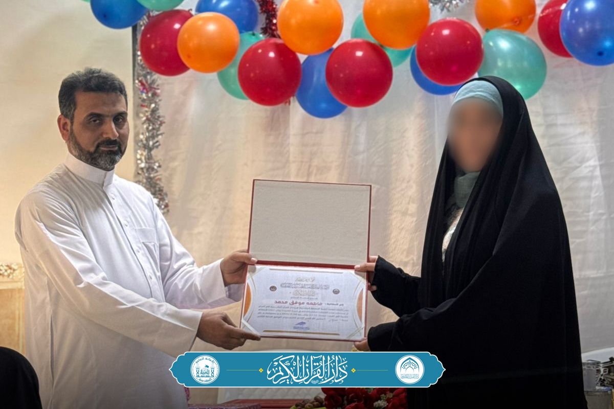 وشهد الحفل تكريم المشاركات بشهادات تقديريّة وهدايا رمزيّة، إضافة إلى تكريم الثلاثة الأوائل من قبل مسؤول الفرع حسين البياتي، الذي أكّد في كلمته أهمية تعلّم القرآن الكريم وتعليمه، مستشهدًا بقول النبي الأكرم (صلى الله عليه وآله وسلم) "خيركم من تعلّم القرآن وعلّمه"، داعيًا المشاركات إلى أن يكنَّ قدوة في حمل رسالة القرآن ونشر تعاليمه.