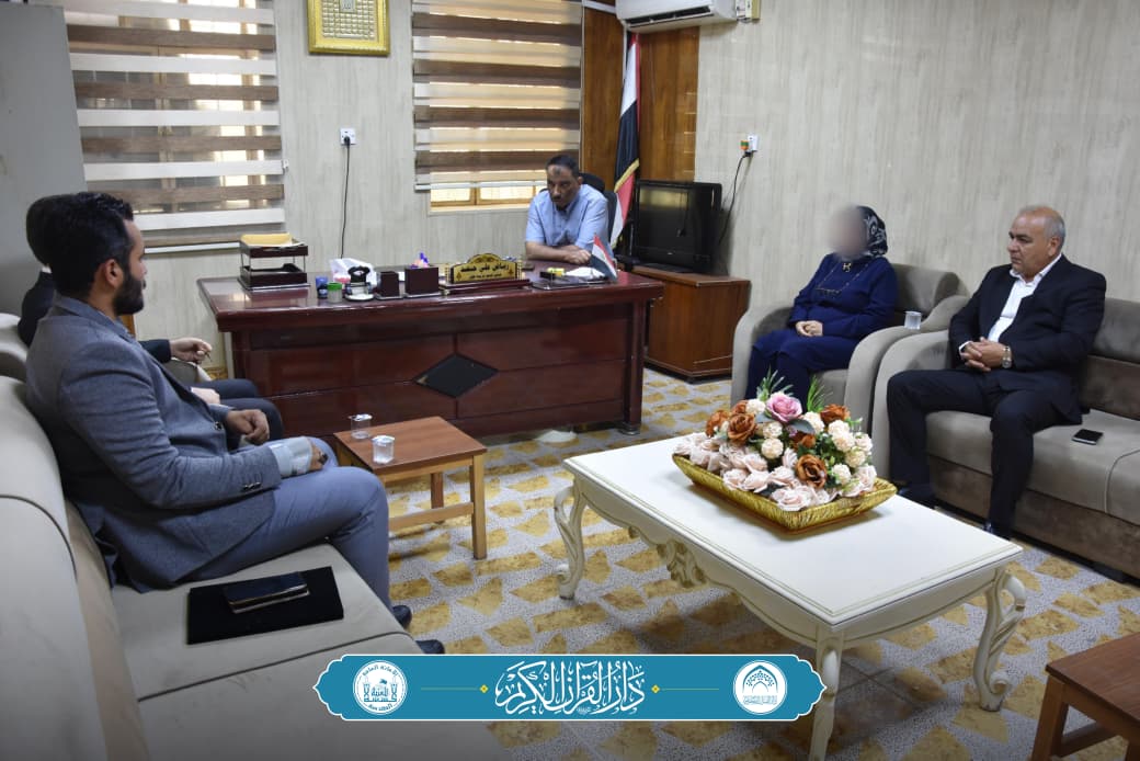 حيث قدّم الوفد ملفات المشروع الوطني لتحفيظ القرآن الكريم في المدارس، وأن هذه المشاريع تهدف إلى تعزيز الثقافة القرآنية حفظًا وتلاوةً، وقدّم السيد مدير التربية دعمه الكامل مؤكّدًا على الاستعداد التام والعمل في إنجاح المشروع للخروج بثمار إيجابية