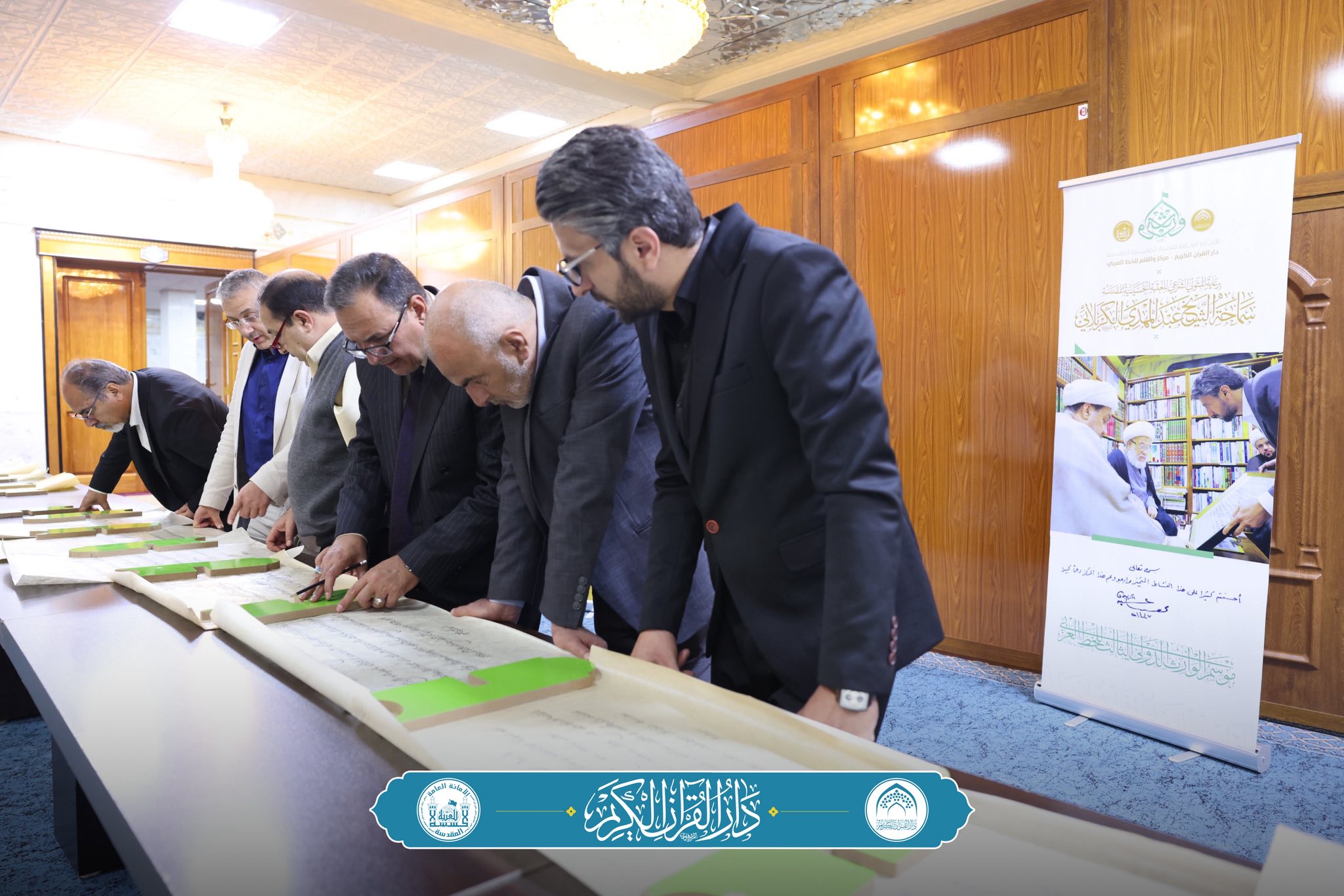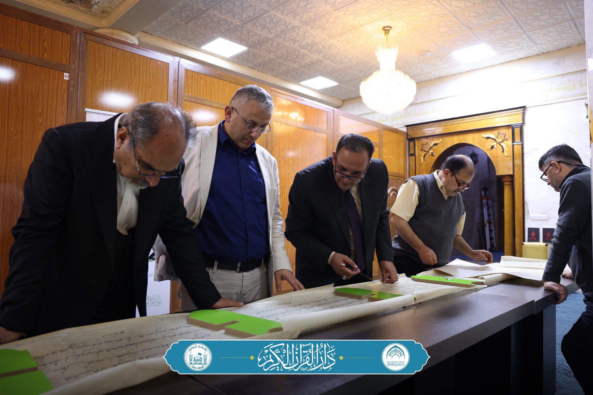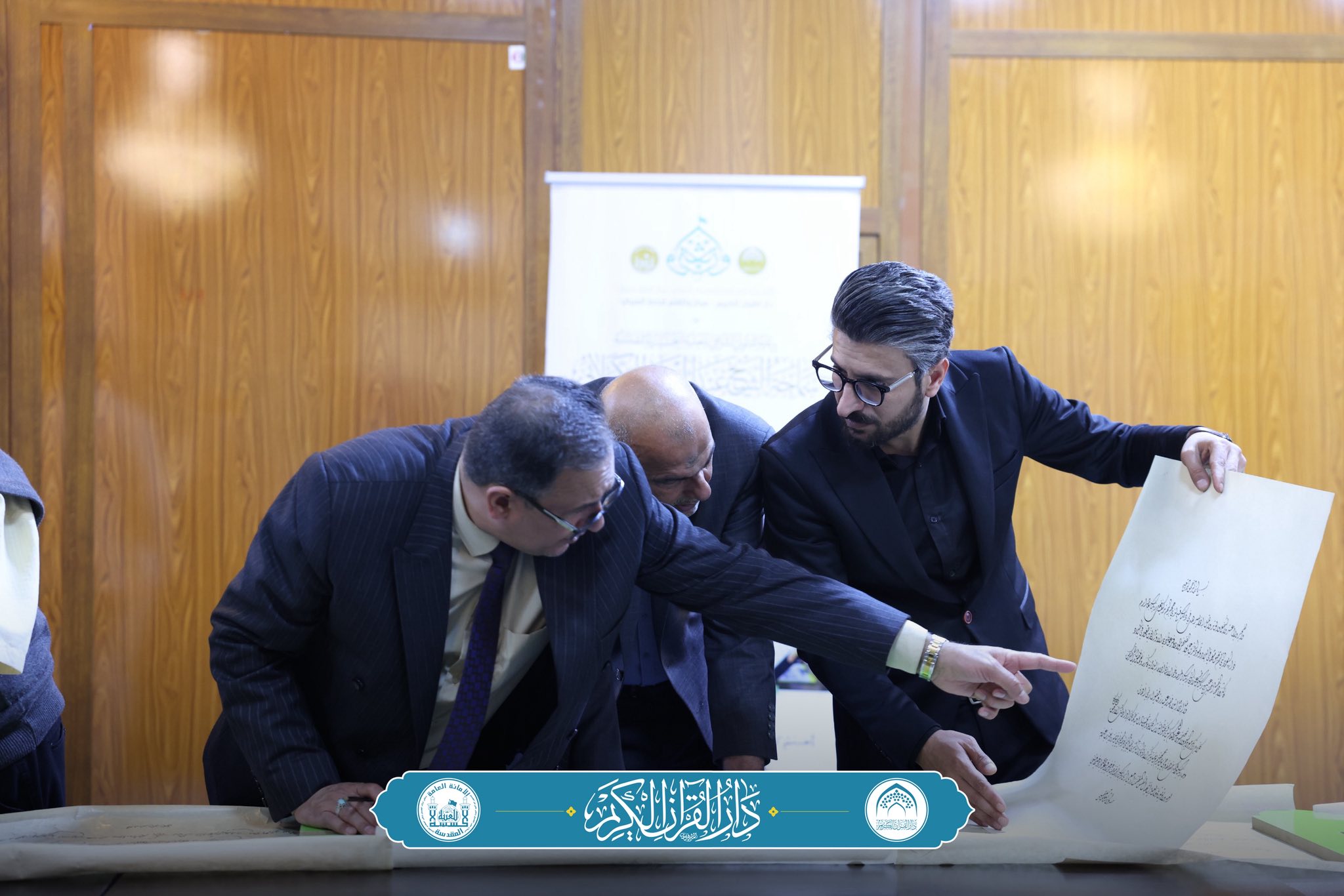 تُتابع لجان الخطاطين أعمالَ التحكيم في فترتها المسائية ضمن المرحلة الثانية من مسابقة وارث الأنبياء الدولية الثالثة للخط العربي، وشرُفت الأعمال بحضور رئيس قسم دار القرآن الكريم، الشيخ الدكتور خير الدين علي الهادي، الذي تفقّد مجريات التحكيم واطّلع على آليات تقييم الأعمال التي يقيمها مركز والقلم للخط العربي التابع لقسم دار القرآن الكريم في العتبة الحسينية المقدسة.