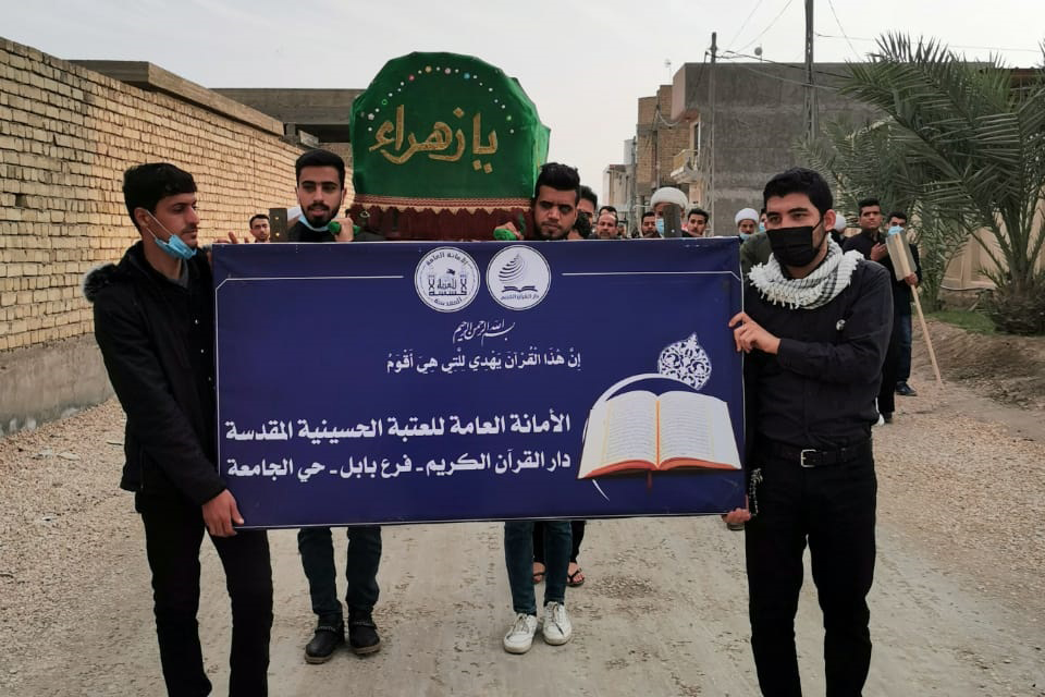 إحياءً لذكرى شهادة السيدة فاطمة الزهراء عليها السلام دار القرآن الكريم التابعة للعتبة الحسينية المقدسة عبر فرعها في بابل نظمت مسيرة عزائية جابت شوارع مدينة "الحلة".