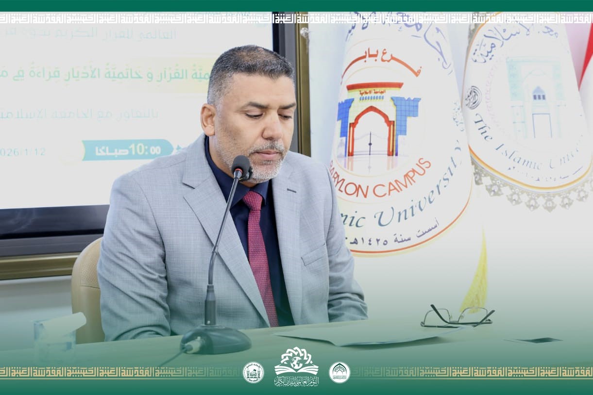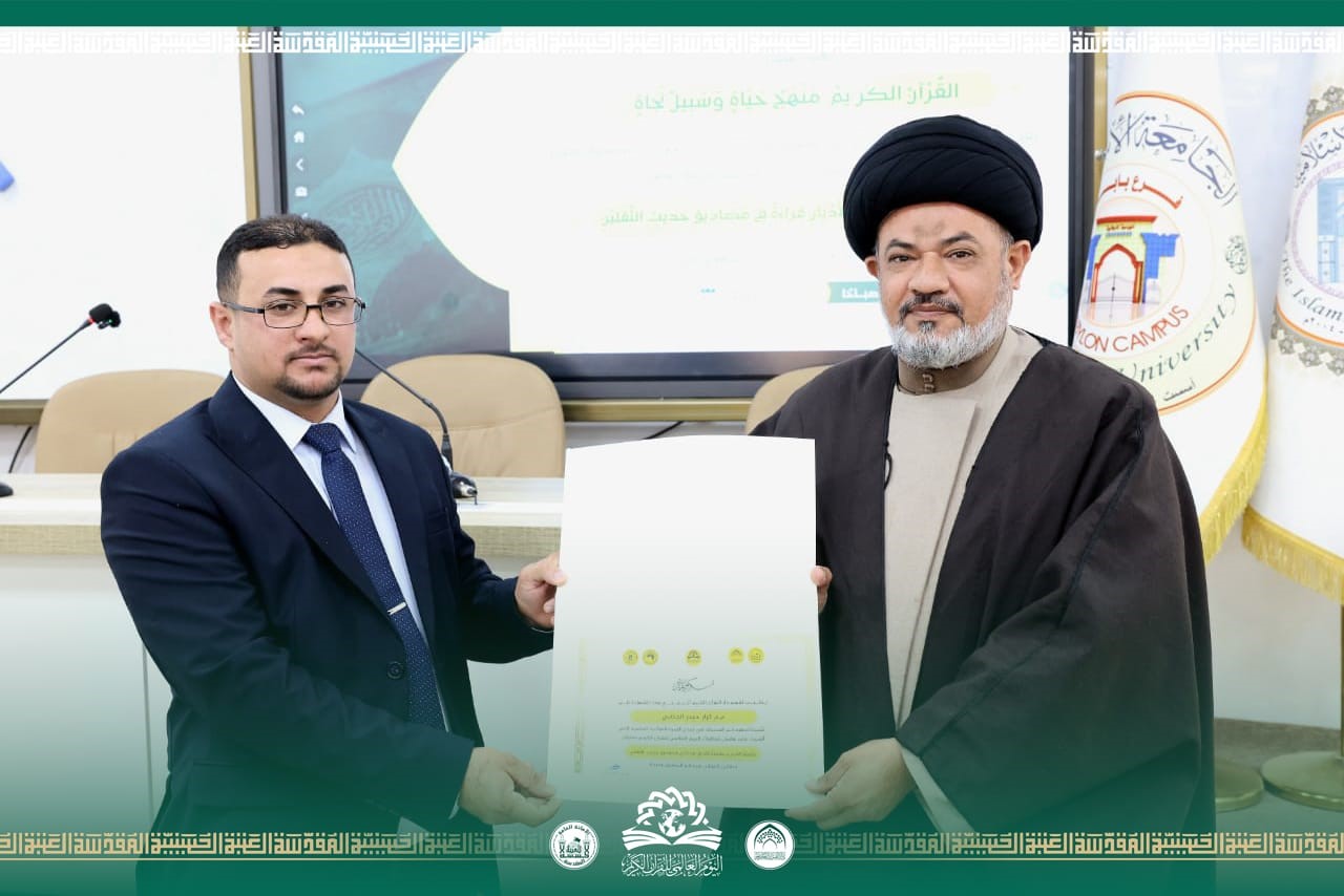 نظم قسم دار القرآن الكريم في العتبة الحسينية المقدسة متمثلًا بشعبة الدراسات والبحوث يوم الاثنين 12 كانون الثاني 2026م، ندوة علمية فكرية في الجامعة الإسلامية فرع بابل ضمن برنامج اليوم العالمي للقرآن الكريم ترأسها الدكتور عماد طالب موسى مسؤول الشعبة وبحضور أكاديمي ورسمي.