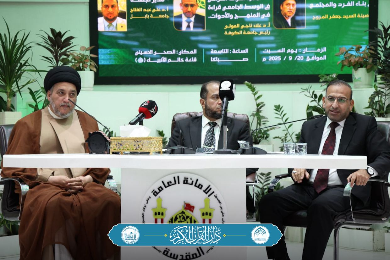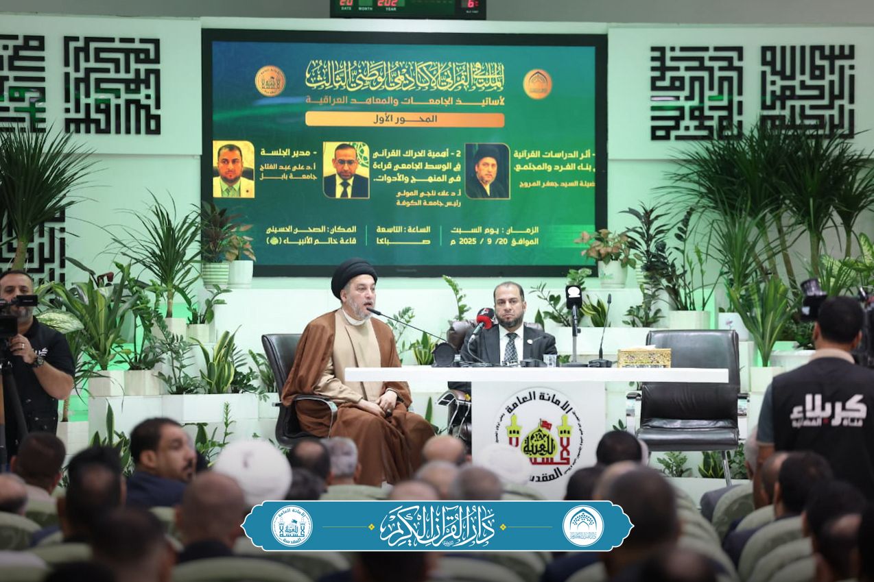 أطلق مركز التعليم الأكاديمي التابع لدار القرآن الكريم في العتبة الحسينية المقدسة الملتقى القرآني الأكاديمي الوطني الثالث لأساتيذ الجامعات و المعاهد العراقية يوم السبت الموافق 2025/9/20 على قاعة خاتم الأنبياء (صلى الله عليه وآله وسلم) في الصحن الحسيني الشريف.