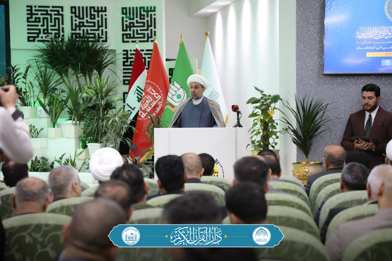 وقال مسؤول مركز الإعلام القرآني وسام نذير الدلفي ": افتتح الحفل بتلاوة عطرة للقارئ الدكتور رافع العامري ثم قراءة سورة الفاتحة على أرواح شهدائنا الأبرار والاستماع إلى النشيد الوطني العراقي و نداء العقيدة، ثم كلمة لرئيس قسم دار القرآن الكريم الشيخ الدكتور خير الدين علي الهادي تطرّق فيها إلى أهمية القرآن الكريم و دوره في شتّى المجالات العلمية مثل كليات (الطب، الصيدلة، الهندسة وغيرهن من الكليات)، و وجّه كلمة شكر إلى المتولي الشرعي و الأمين العام و أساتيذ الجامعات الذين يساندون زملاءهم في العمل القرآني".