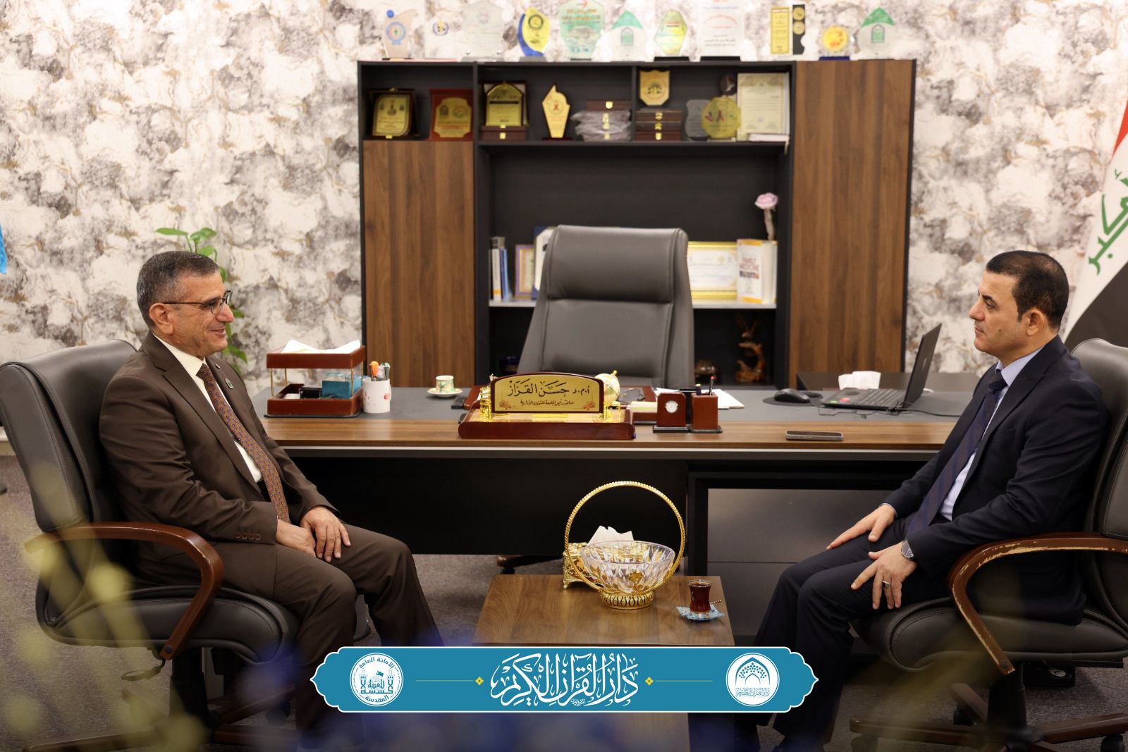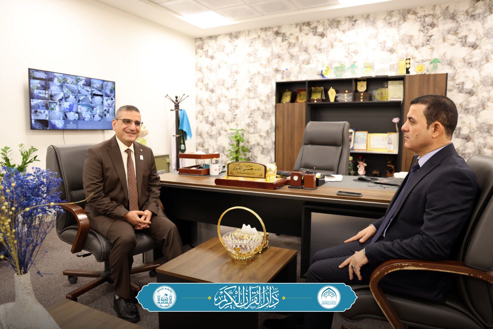 وبيّن :" أن هذه الزيارات جاءت للتباحث وتبادل الأفكار حول دعم الأنشطة القرآنية والأكاديمية في الوسط الجامعي، فضلًا عن توقيع اتفاقيات تعاون بين جامعة الحمدانية وجامعتي الزهراء ووارث الأنبياء ، تسهم في النهوض بالواقع العلمي والتعليمي”.