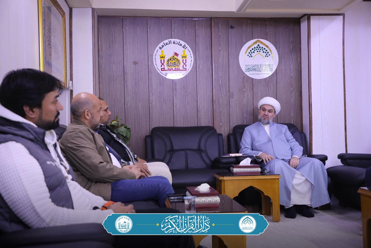 استقبل رئيسُ قسم دار القرآن الكريم في العتبة الحسينية المقدسة الشيخ الدكتور خير الدين علي الهادي، وفدًا من الخطّاطين العرب والدوليين، ضمّ الأستاذ الخطاط أشرف حسن من جمهورية مصر العربية، والأستاذ الخطاط علي الجد ومحمد النشيمي من مملكة البحرين، والأستاذ الخطاط أوس البندر من العراق، يرافقهم مسؤول مركز والقلم للخط العربي السيد محمد المشرفاوي يوم الاثنين الموافق 2025/12/15 .