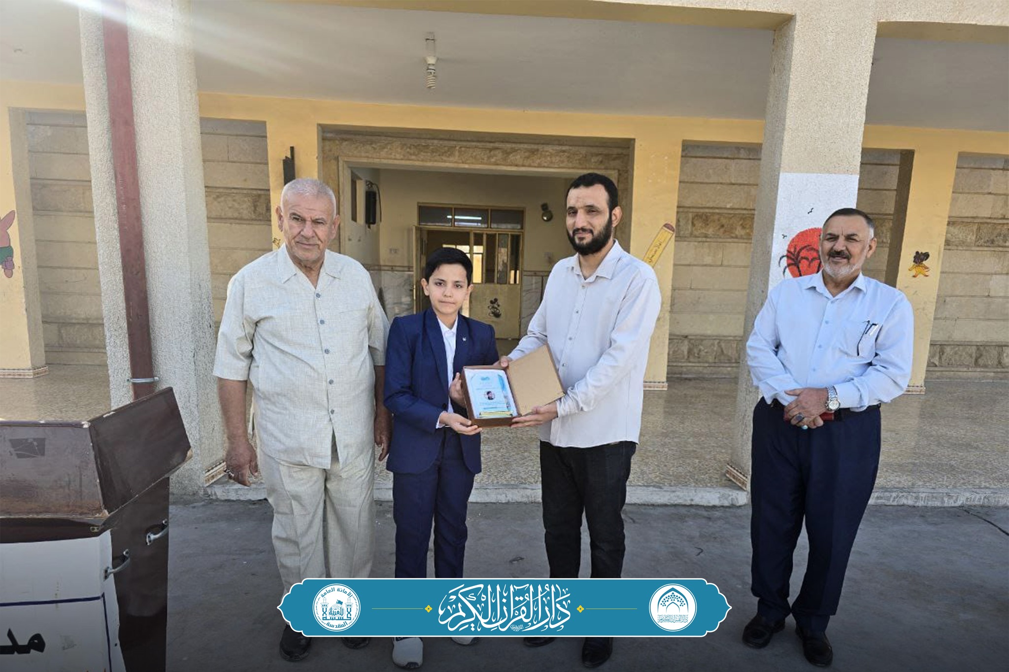 يواصل فرع دار القرآن الكريم في محافظة ميسان التابع للعتبة الحسينية المقدسة تكريم الطلبة المتميّزين بحفظ كتاب الله العزيز، ضمن سلسلة نشاطاته المستمرة في مدارس المحافظة؛ تشجيعًا لهم على مواصلة التفوّق والعطاء في إطار مشروع التحفيظ الوطني .